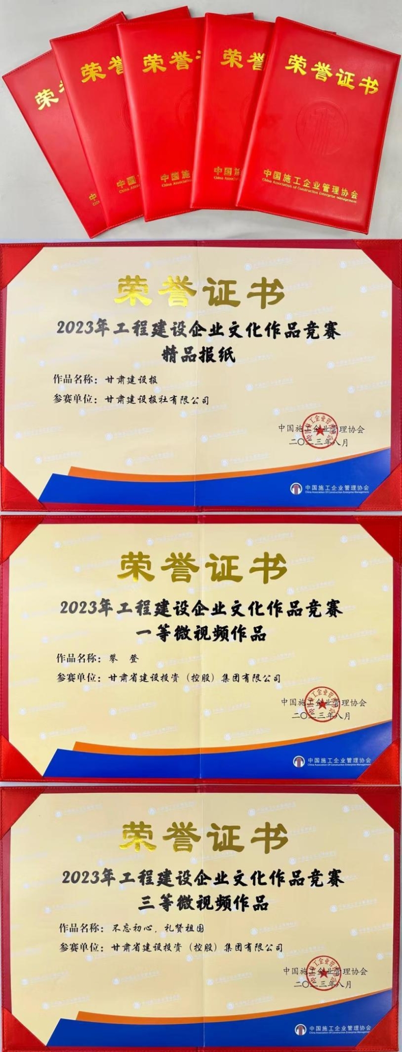 2023年工程建設(shè)企業(yè)文化作品競(jìng)賽中,《甘肅建設(shè)報(bào)》被評(píng)為最高榮譽(yù)“精品”報(bào)紙,短視頻《攀登》(作者:王海燕)榮獲一等獎(jiǎng),《不忘初心,禮贊祖國(guó)》(作者:王麗源)榮獲三等獎(jiǎng)。
