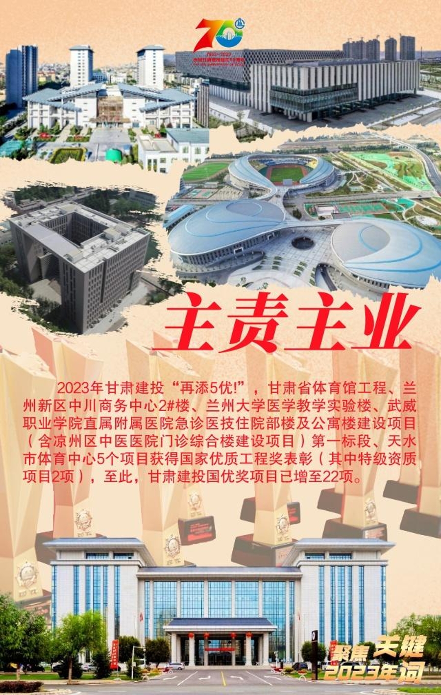 這一年,甘肅建投堅(jiān)持聚焦主業(yè),做強(qiáng)實(shí)業(yè),對(duì)標(biāo)一流,夯實(shí)可持續(xù)發(fā)展的基礎(chǔ)。魯班獎(jiǎng)、國家優(yōu)質(zhì)工程獎(jiǎng)、中國土木工程詹天佑獎(jiǎng)、中國鋼結(jié)構(gòu)金獎(jiǎng)、中國建筑工程裝飾獎(jiǎng)、中國安裝之星、房地產(chǎn)廣廈獎(jiǎng)……甘肅建投拿遍了建設(shè)行業(yè)的“國字號(hào)”質(zhì)量獎(jiǎng)項(xiàng),僅這一年,就獲得了數(shù)項(xiàng)各類國家級(jí)獎(jiǎng)項(xiàng),實(shí)現(xiàn)了“建精品工程,筑百年基業(yè)”的承諾。