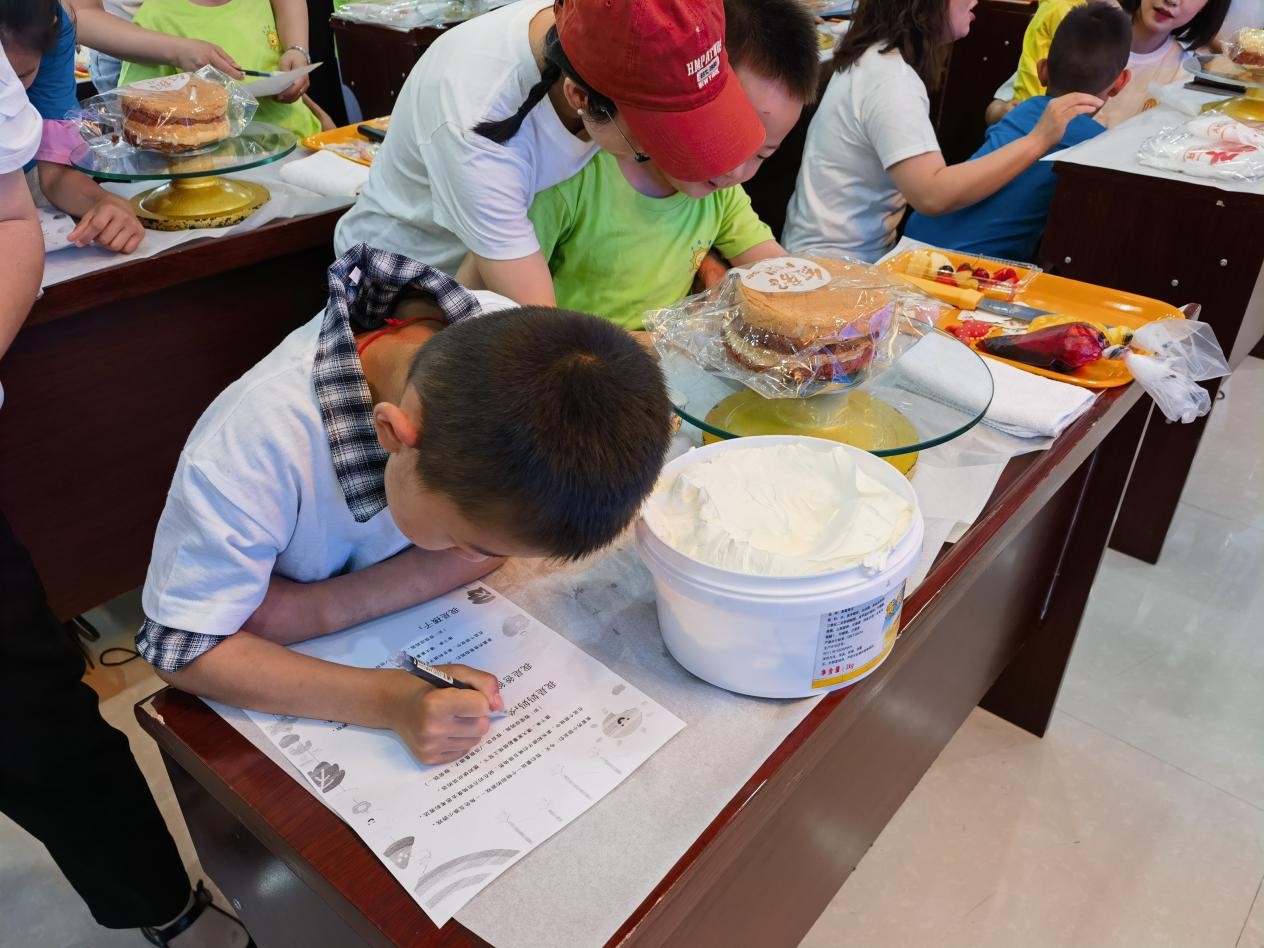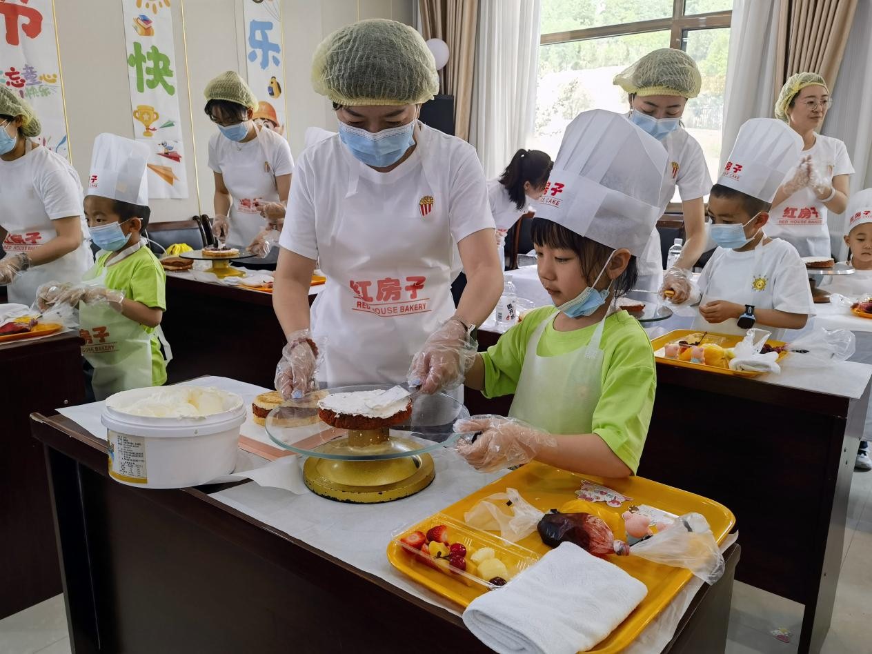 在DIY蛋糕制作環(huán)節(jié),家長(zhǎng)和小朋友穿烘焙師圍裙、帽子、手套、口罩,開始了一場(chǎng)奇妙的DIY美食之旅。專業(yè)烘焙師給小朋友們講解了制作蛋糕的流程和方法,現(xiàn)場(chǎng)演示各個(gè)操作步驟。孩子和家長(zhǎng)們認(rèn)真聆聽講解示范后,相互合作,孩子們充分發(fā)揮自己的創(chuàng)意,用奶油、水果等對(duì)蛋糕胚進(jìn)行點(diǎn)綴,制作得有模有樣。