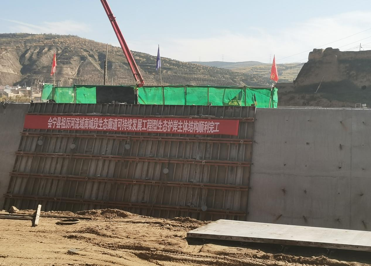 11月4日,隨著左岸L型護岸擋墻最后一倉混凝土開倉澆筑,由甘肅建投安裝公司弘豐水利水電公司承建的會寧縣祖厲河流域南城段生態(tài)廊道可持續(xù)發(fā)展工程護岸主體結構全面完工,正式轉入生態(tài)步道及綠化工程實施階段。