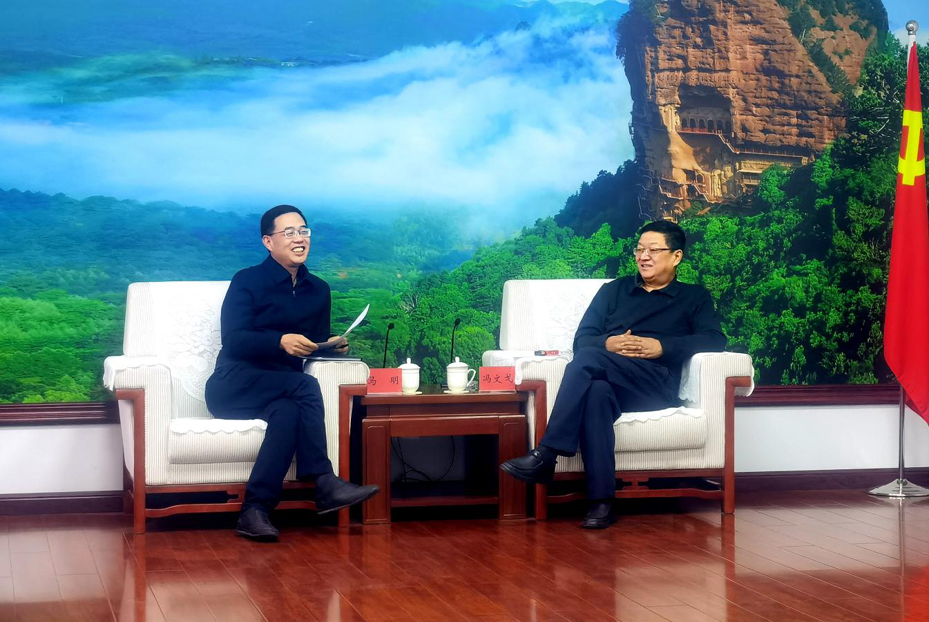 12月9日,甘肅建投集團(tuán)黨委書(shū)記、董事長(zhǎng)馬明和天水市委書(shū)記馮文戈座談交流。