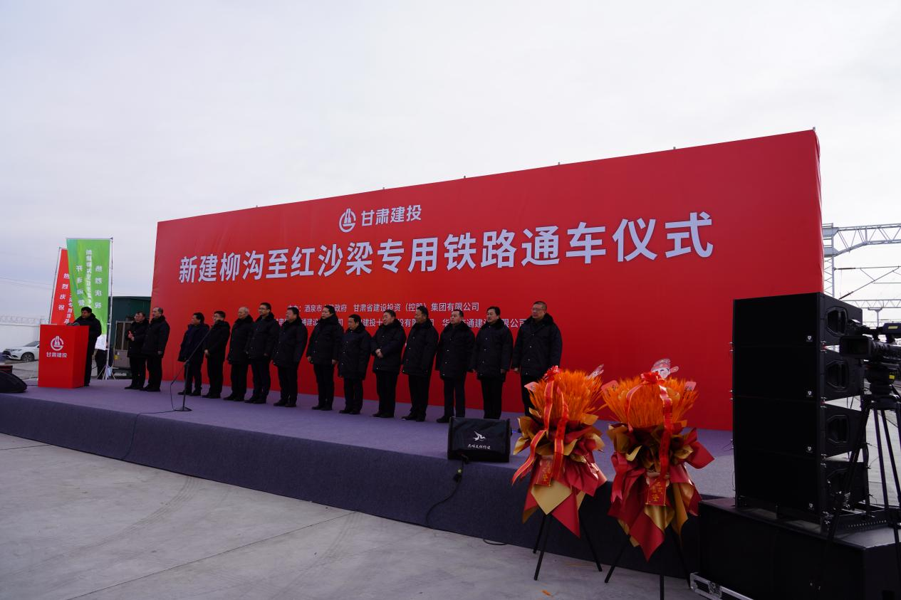 柳紅專用鐵路通車儀式在柳溝西站舉行,儀式由酒泉市發(fā)改委黨組書記、主任王雄蛟主持,酒泉市人大常委會(huì)黨組書記、主任,馬鬃山經(jīng)開區(qū)黨工委書記趙峰出席儀式并宣布通車。酒泉市委常委、市政府黨組副書記、常務(wù)副市長(zhǎng)何正軍致辭。蘭州鐵路監(jiān)督管理局二級(jí)巡視員王亞斌,中國(guó)鐵路蘭州局集團(tuán)有限公司副總工程師吳冰,甘肅建投黨委常委、副總經(jīng)理、黨委組織部(人力資源部)部長(zhǎng)郭文俊出席儀式。