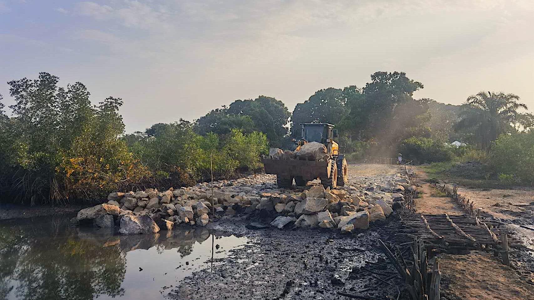 在塞拉利昂,邦特島道路項目順利完成信息牌制作,為項目管理提供了便利,高效完成了K0+615—K0+485路段共計130米的拋石擠淤工作,同時項目團隊成功預(yù)制了50根混凝土排水管。