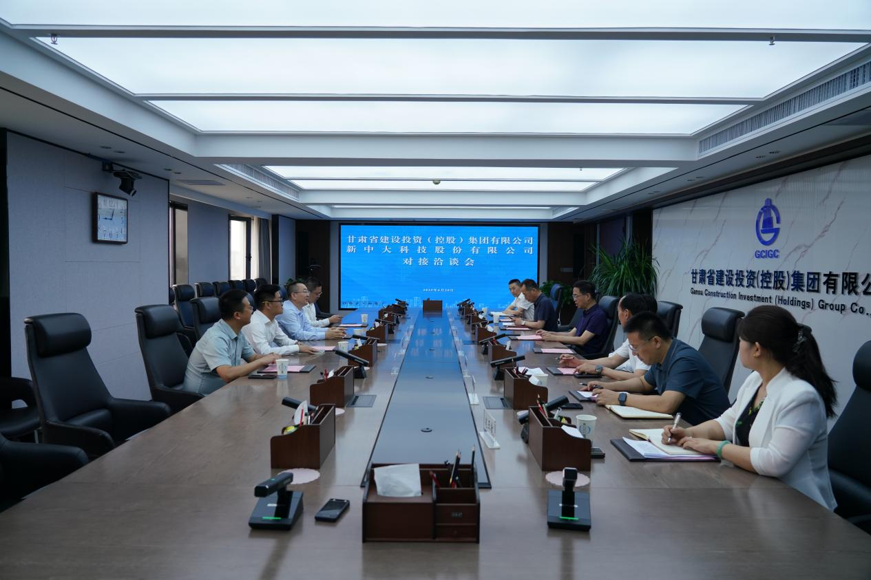 6月20日,甘肅建投黨委書記、董事長馬明與新中大科技股份有限公司總裁、CEO韓愛生進行對接洽談。
