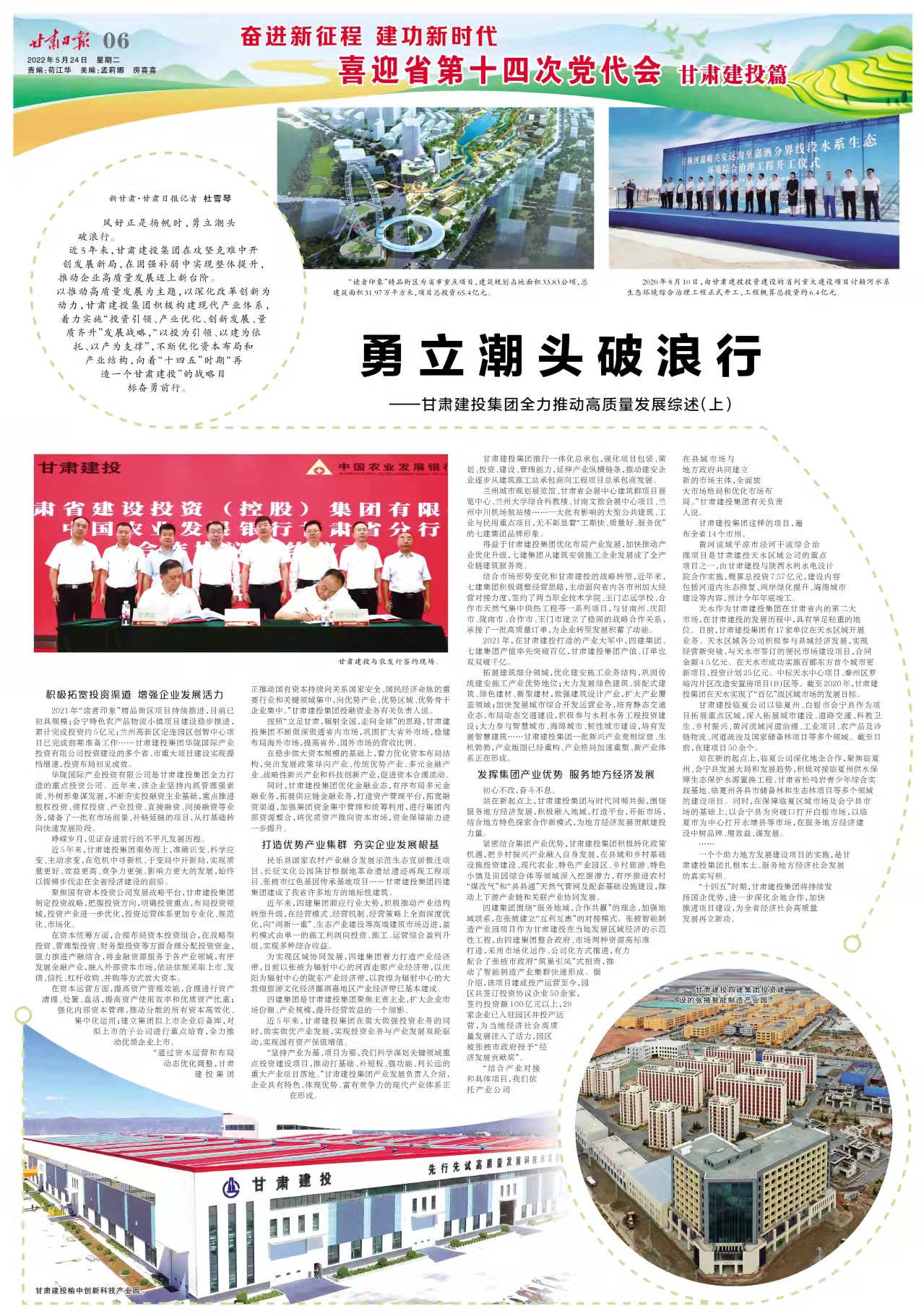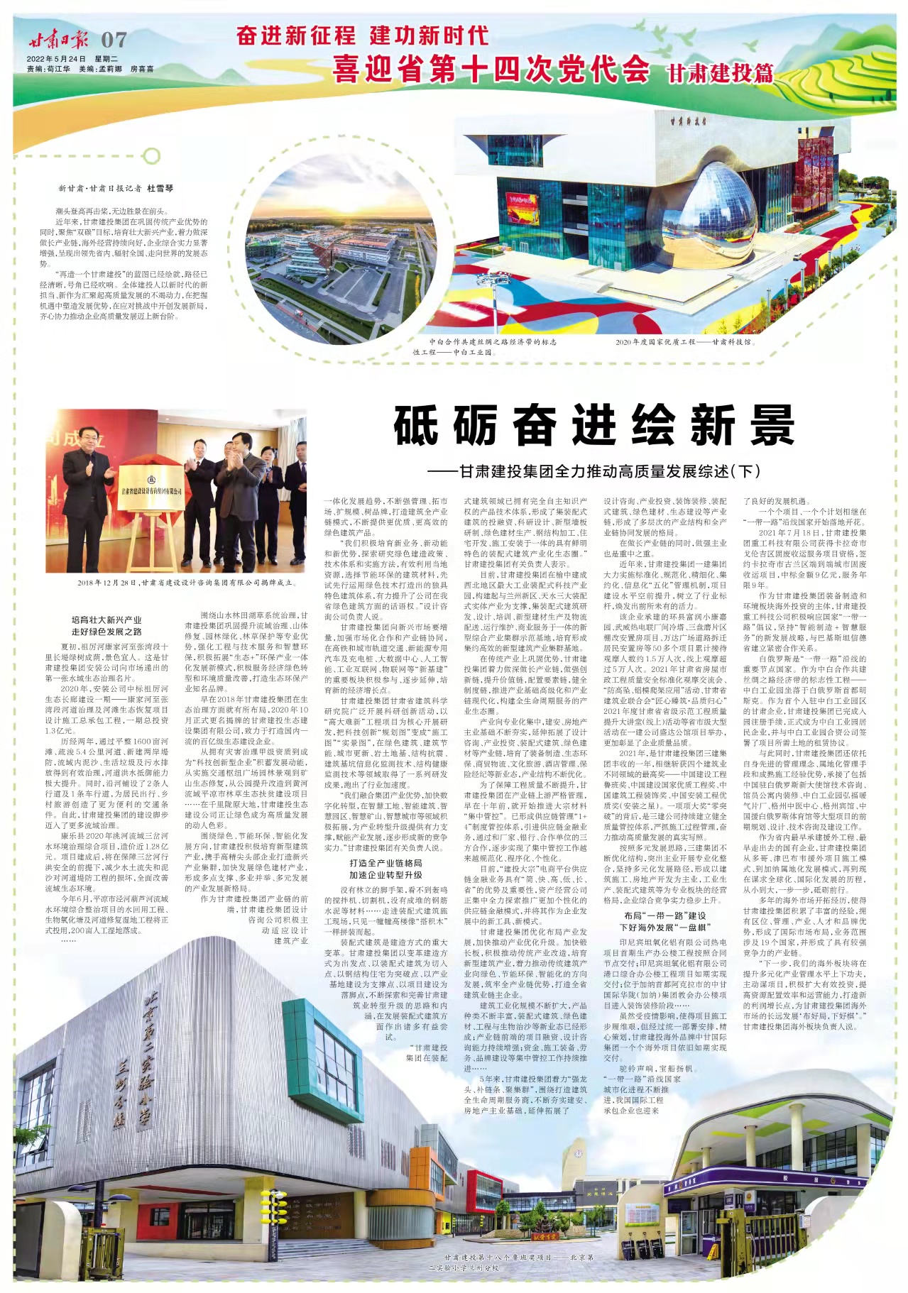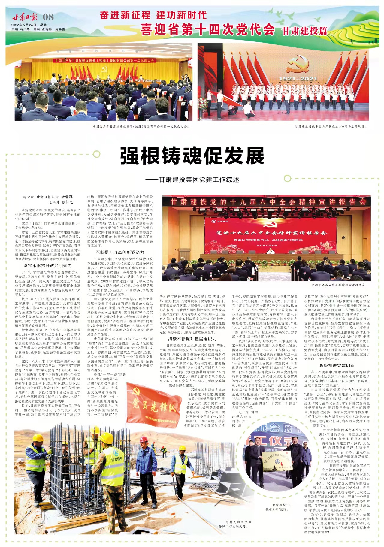 《甘肅日報》:奮進新征程 建功新時代——喜迎省第十四次黨代會?甘肅建投篇